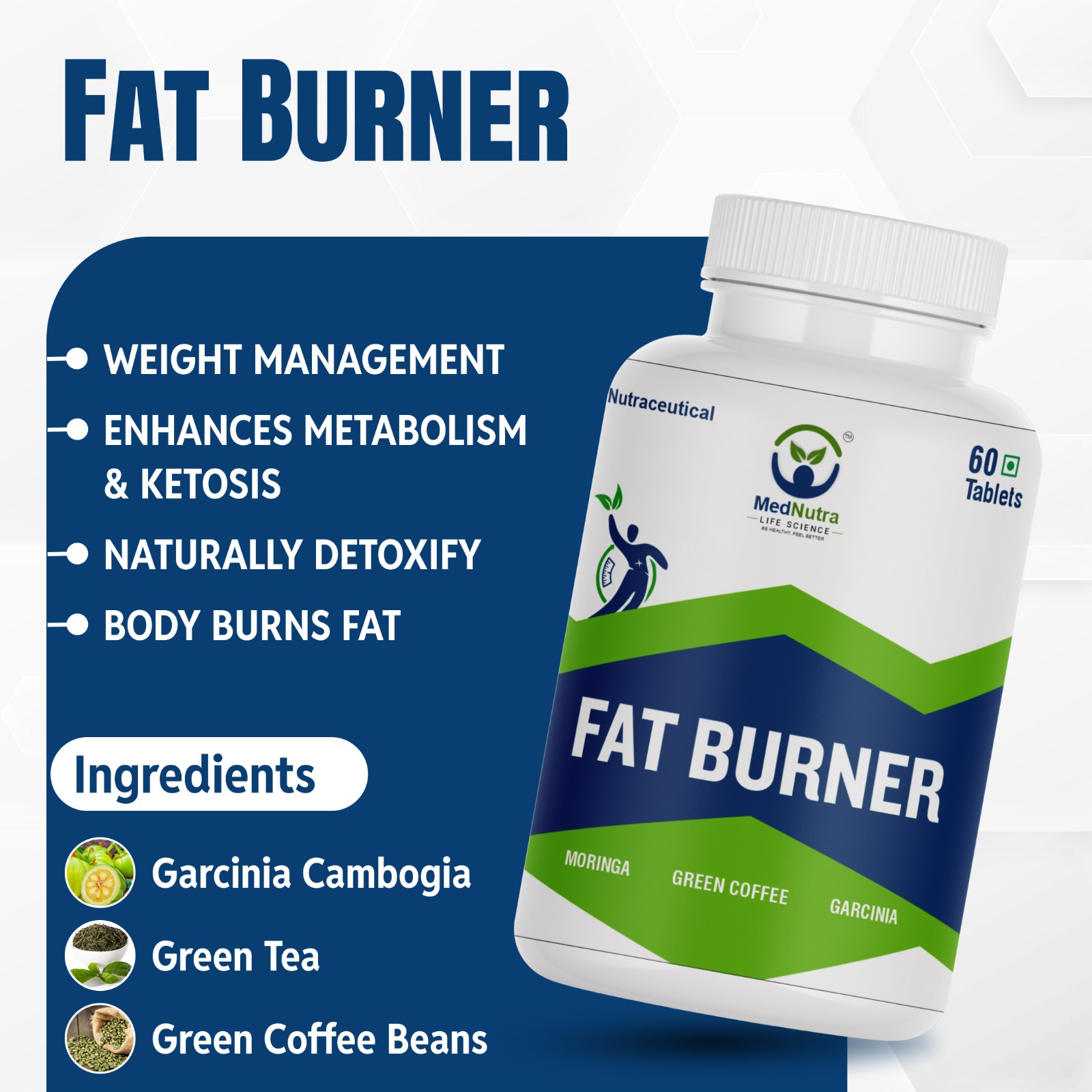 Med Nutra Keto Fat Burner Weight loss Garcinia Cambogia, Green Tea, Green Coffee Bean for (60 Capsules)